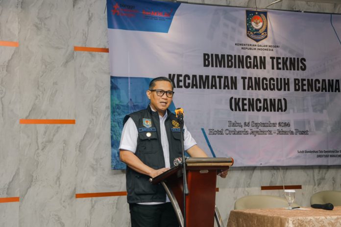 Jakarta – Dalam upaya memperkuat penanggulangan bencana di tingkat kecamatan, Ditjen Bina Administrasi Kewilayahan melalui Direktorat Manajemen Penanggulangan Bencana dan Kebakaran melakukan Bimbingan Teknis (Bimtek) Kecamatan Tangguh Bencana (KENCANA) pada Rabu (25/9/2024) di Hotel Orchadz Pangeran Jayakarta. Bimtek Kencana ini dibuka langsung oleh Dr. Drs. Amran, MT Selaku Plh. Direktur Jenderal Bina Administrasi Kewilayahan.