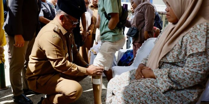 Banda Aceh – Penjabat Gubernur Aceh, Dr. H. Safrizal ZA, M.Si, memasangkan kaki palsu kepada para penyandang disabilitas dalam kegiatan yang diselenggarakan Dinas Sosial Aceh di UPTD Rumoh Seujahtera Jroh Naguna, Senin (2/12/2024). Kegiatan ini merupakan bagian dari peringatan Hari Disabilitas Internasional 2024.