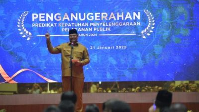 Pj. Gubernur Aceh, Dr. H. Safrizal ZA, M.Si, saat memberikan sambutan pada acara Penganugerahan Predikat…